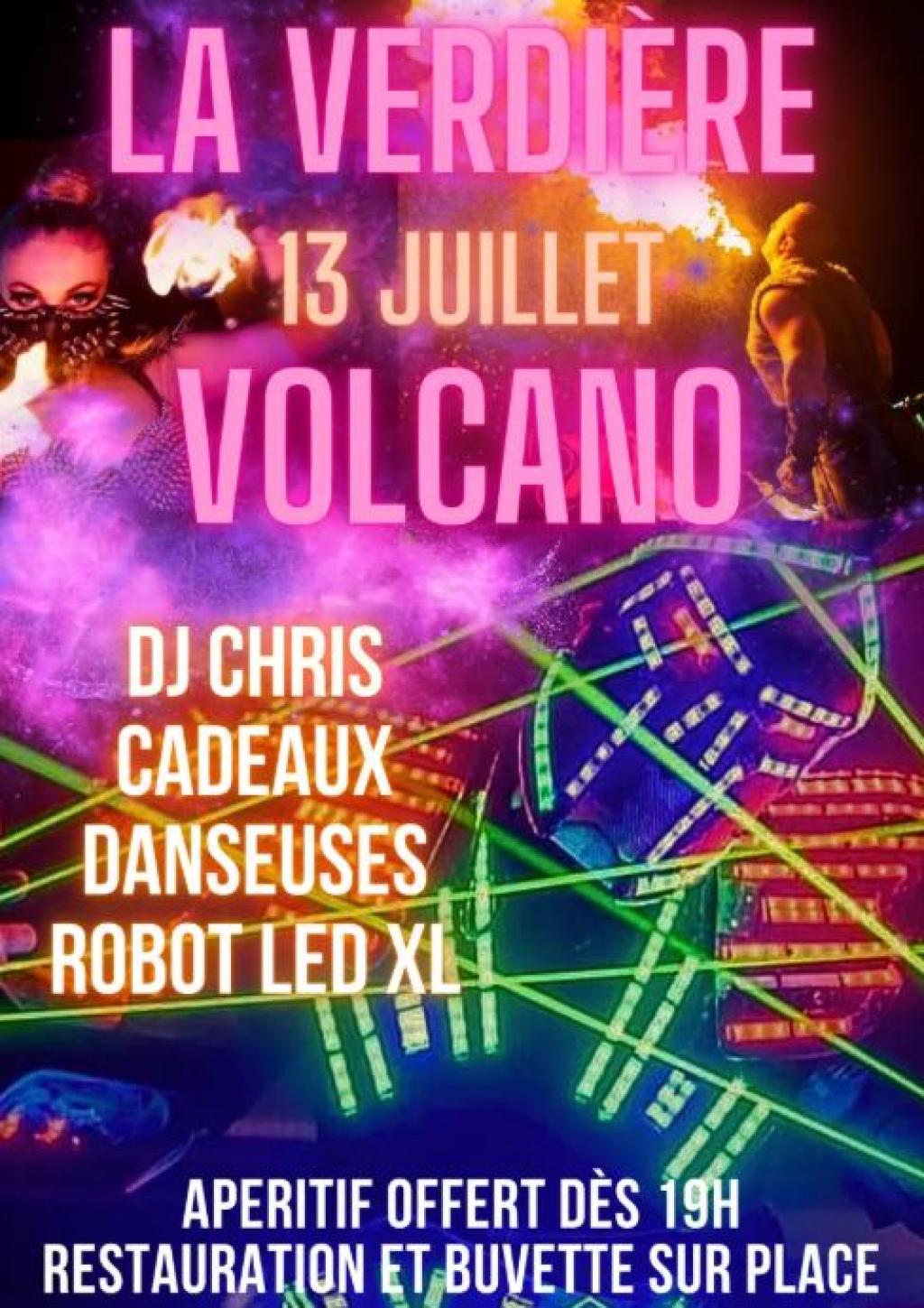 “ Assistez à un show visuel et sonore à ne pas manquer pour une veille de fête nationale avec DJ Chris en live, cadeaux, danseuses, robo led xl, apéritif offert et restauration sur place. ”