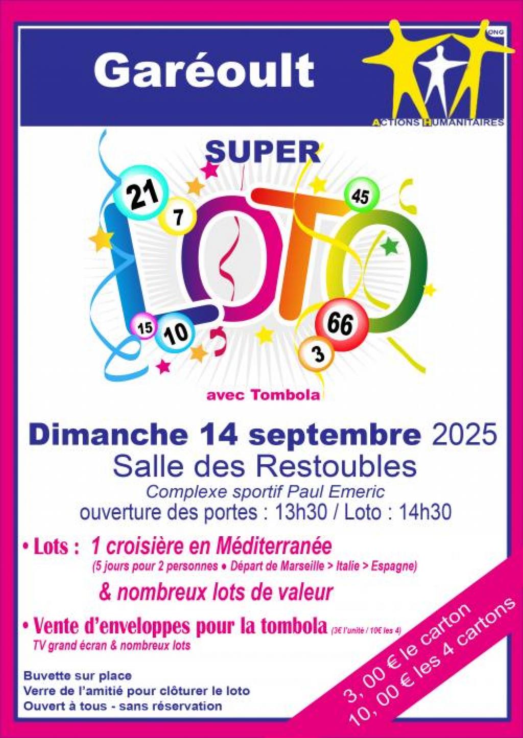 “ Un super loto avec tombola. Buvette sur place . Verre de l'amitié pour clôturer le loto ”