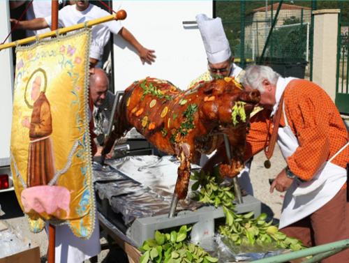 En 1984, un petit groupe d'irréductibles, les "Mestre Tastaire en Porcariè" (Maîtres tasteurs de cochonnailles) décidèrent, avec la bénédiction de saint Antoine, dont l'église possède une statue, de renouer avec cette noble tradition. Il ne restait plus qu'à rallumer le flambeau et les fourneaux, à préparer boudins et saucisses et à trouver une date mieux appropriée aux impératifs de la civilisation des loisirs. Depuis, la foire à la saucisse, fixée au premier week-end de septembre a retrouvé toute sa saveur. Elle donne lieu à des repas d'anthologie auxquels participent jusqu'à 1500 convives qui célèbrent les vertus de "Messire Porquet", avec cette jovialité communicative propre aux amateurs de bonne chère.