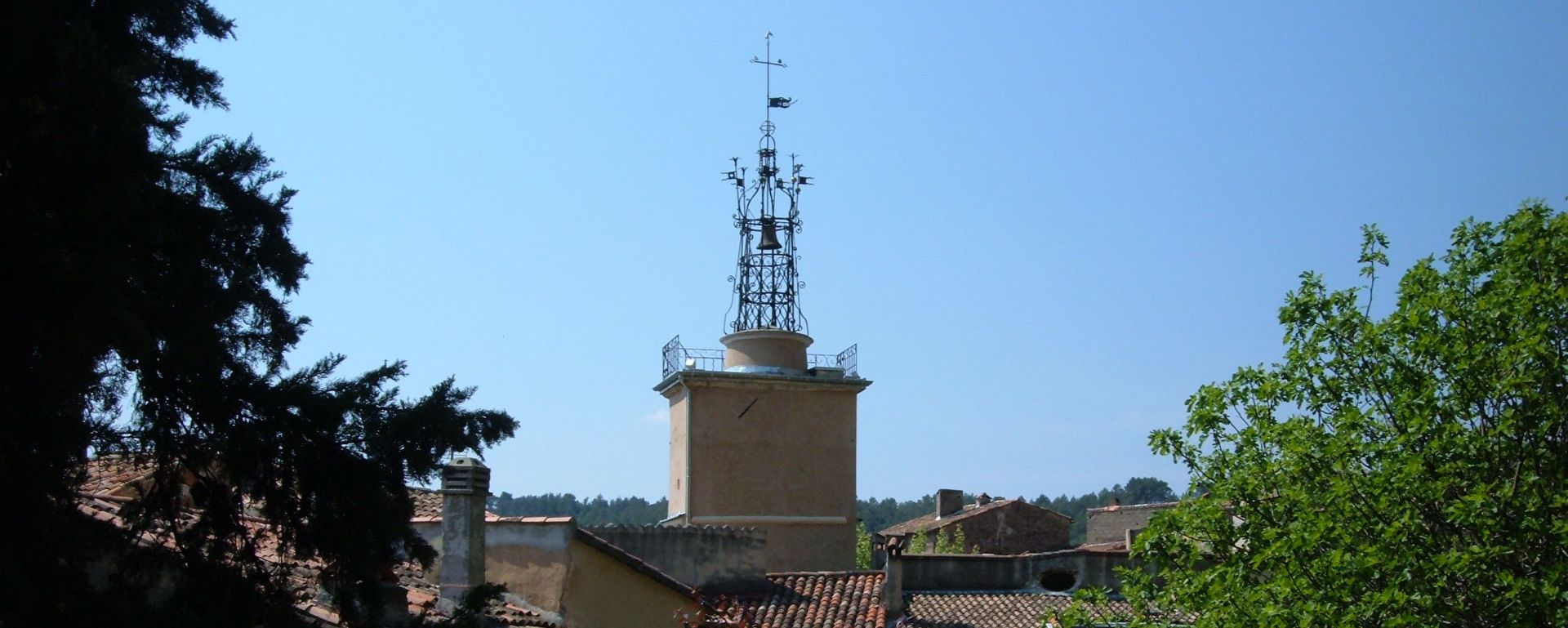 Au sommet de l’église paroissiale Saint-Etienne à Garéoult, se dresse une magnifique horloge surmontée d’un campanile en fer forgé abritant sa cloche