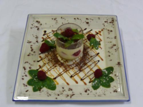 5. Prendre des verrines ; mettre une couche du mélange, une couche de framboises et ainsi de suite.