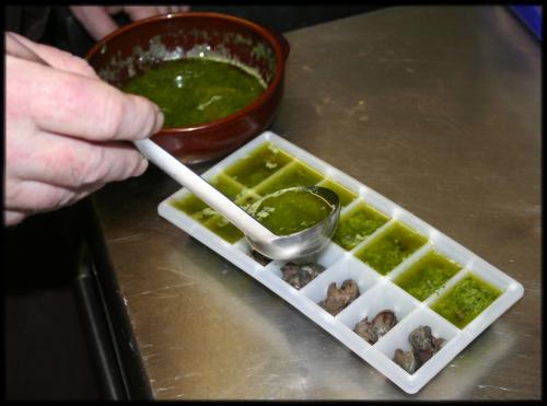 1. A l'avance mettre dans le bac à glaçons un ou deux escargots par alvéole selon grosseur