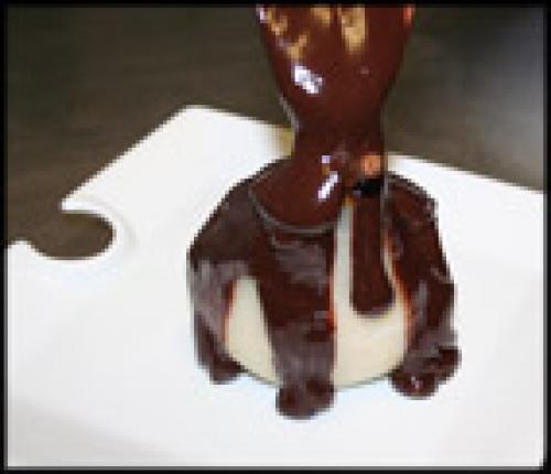 6. Préparer la sauce chocolat en faisant fondre le chocolat au bain marie avec le reste de crème fleurette.