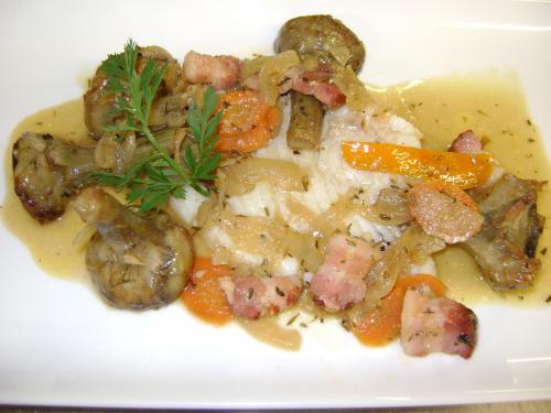 Benjamin Bufferne , chef du restaurant Les Terrasses du golf à Brignoles, vous propose sa recette du turbot en barigoule d'artichaud violet et lard paysan