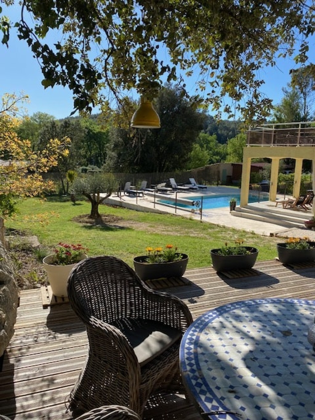 Style provençal et brocante, jardin au calme avec vue piscine ou vue jardin. Chaque chambre dispose d'une entrée séparée et d'une terrasse privée. Grande disponibilité des hôtes pour proposer des visites, des randonnées, des itinéraires à vélo et à moto.
