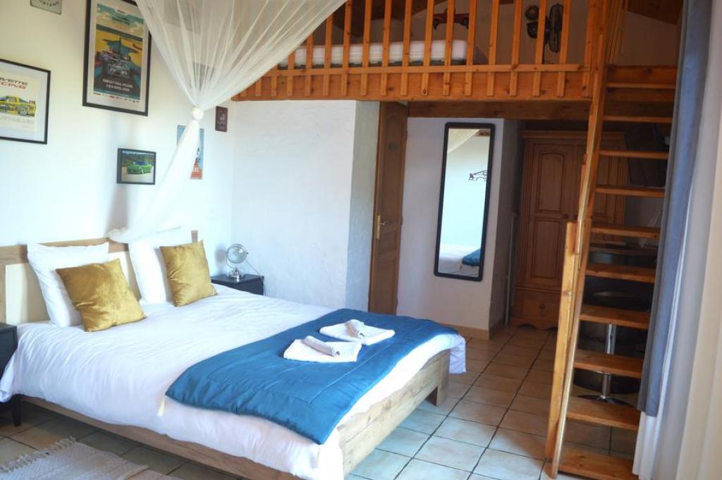 > V10 : 20m² avec une décoration de sport automobile, lit double 160*200, 2 couchages simples 90*190 en mezzanine (idéal enfants), télévision, terrasse privative, frigo, bouilloire, climatisation, double vitrage et salle d'eau. Calme assuré et nuits fraîches.