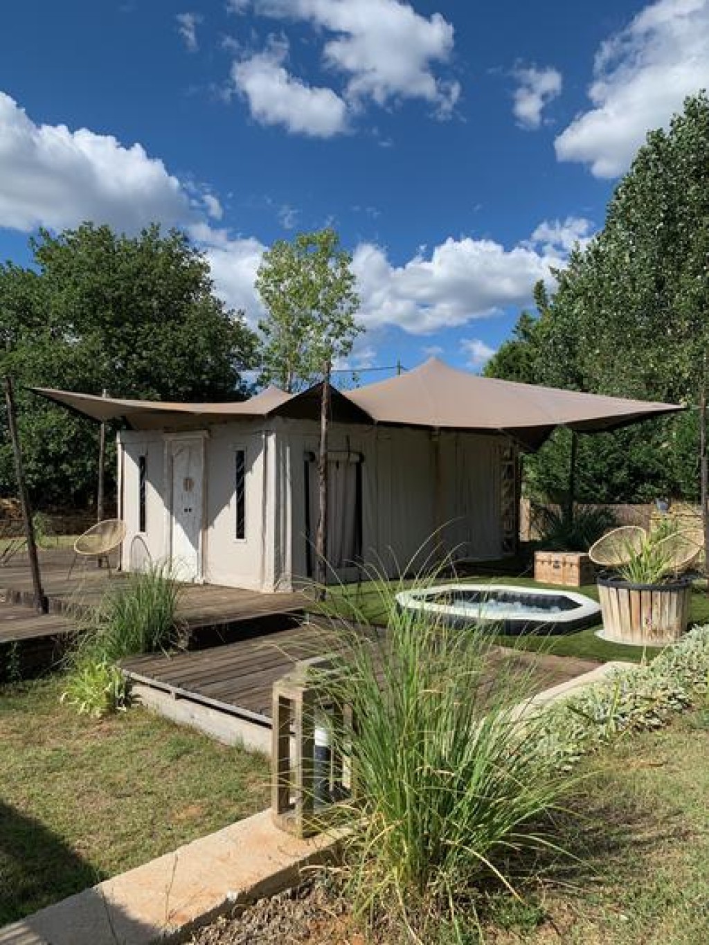 Conçu pour accueillir un seul couple à la fois, ce lodge garantit une intimité totale et une atmosphère paisible, idéale pour une escapade à deux. Installé au cœur d’un domaine de plus d’1,5 hectare, vous profiterez d’un jardin privatif de 5 000 m², sans aucun vis-à-vis.