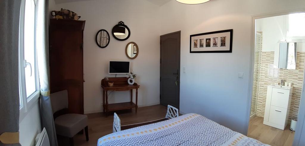 Votre chambre située au premier étage de notre maison vous offre une vue sur les collines et la basilique. Elle est équipée d'une salle d'eau et d'un WC indépendant. Linge de toilette, produits d'accueil et sèche-cheveux à votre disposition, connexion Wifi offerte, parking assuré dans la propriété.