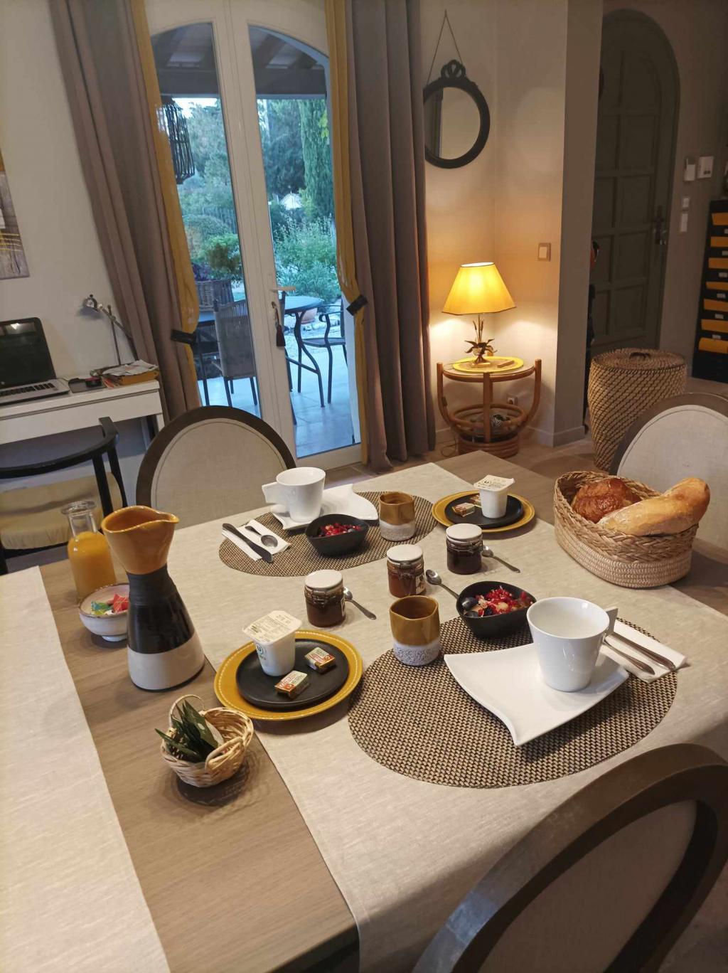 Le petit déjeuner composé de produits frais est servi à nos hôtes sur la terrasse ou à l'intérieur de la maison.