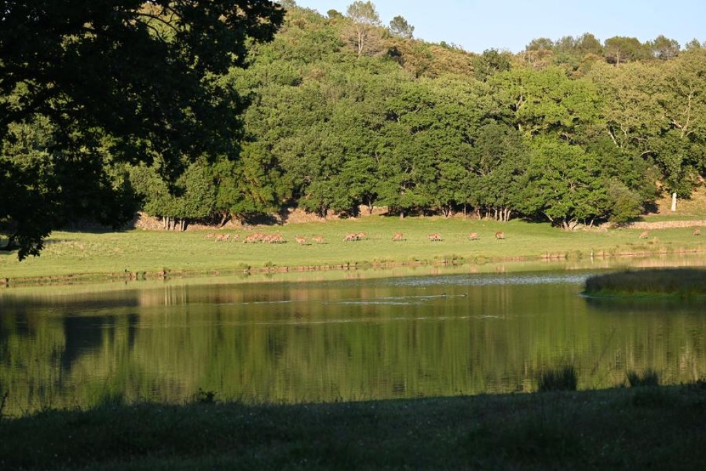Le Domaine de Muscapeau déploie collines boisées, champs et étangs sur 120 hectares entièrement clos.