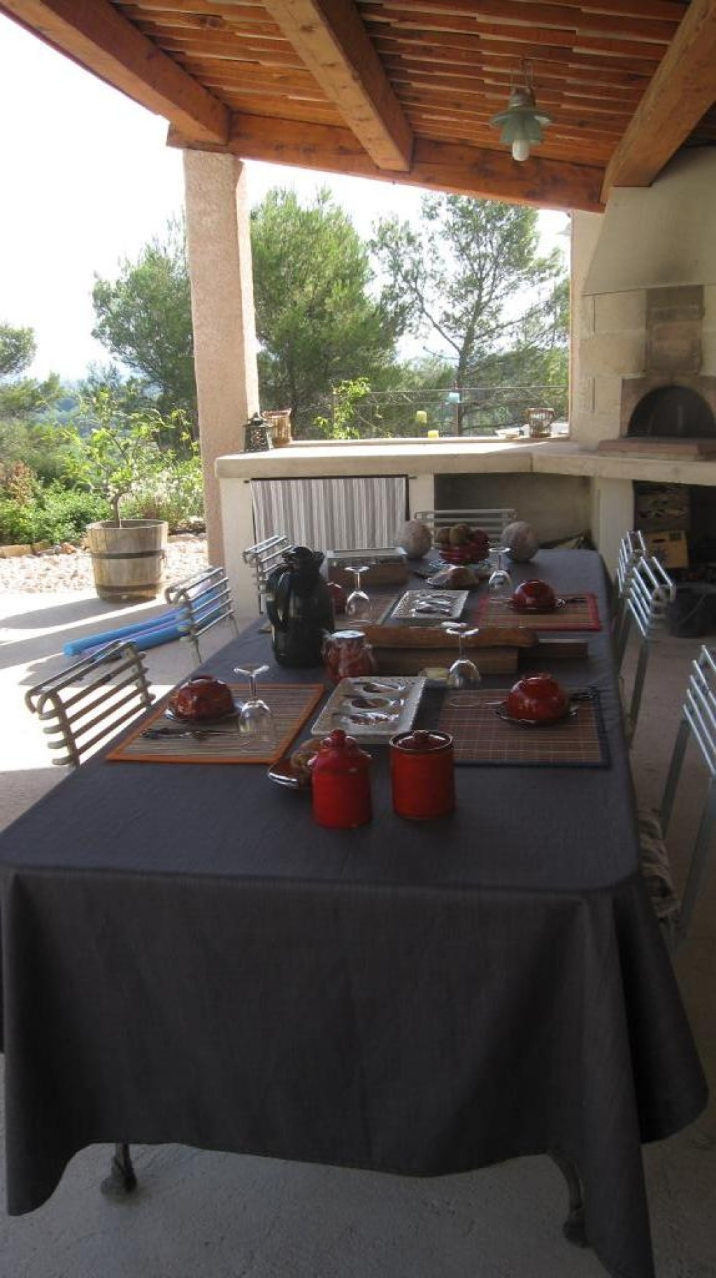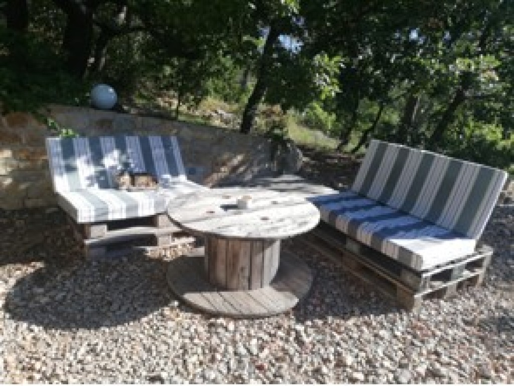La cuisine d'été, en accès libre, est équipée d'un frigo congélateur et d'un minimum de vaisselle donnant la possibilité de prendre des repas simples.