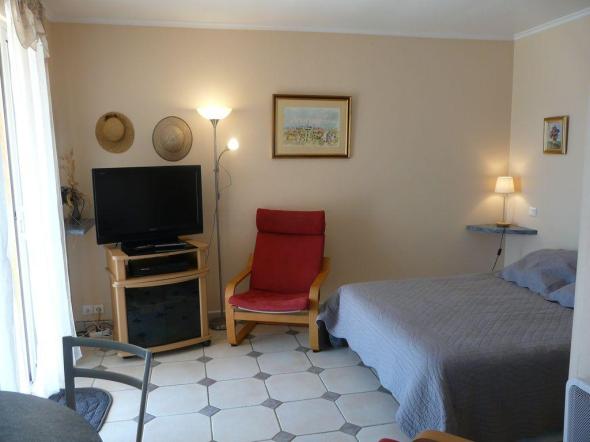 Joli studio indépendant et de plain-pied, dans une aile de la villa des propriétaires. Très bon état, décoration soignée. Jardin 2000 m². Quartier résidentiel au calme à environ 2 km du centre ville.