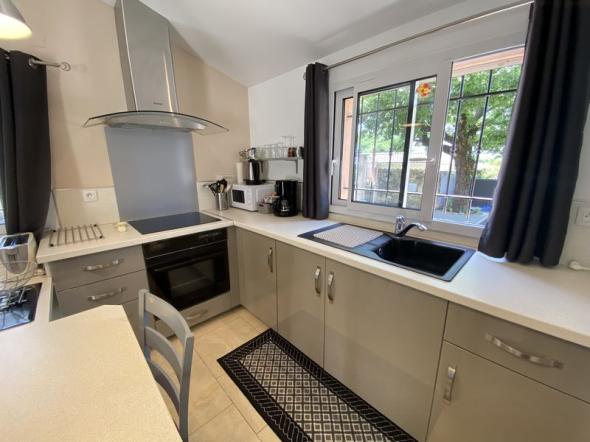 Location saisonnière pour 2 personnes de plain-pied à côté de la maison des propriétaires. Situé dans un quartier résidentiel au calme avec tout le confort. Commerces à proximité, place de parking et portail.