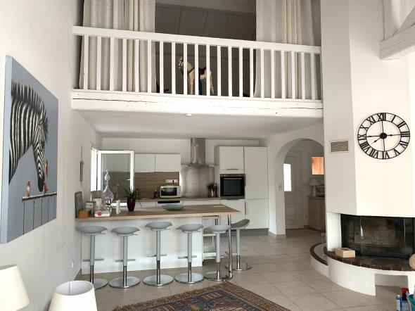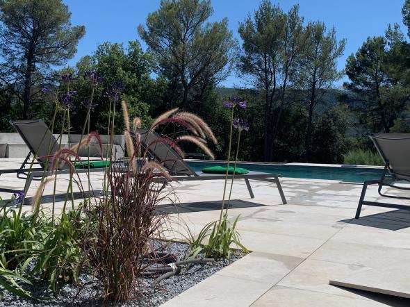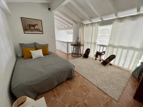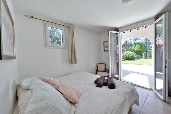 Maison mitoyenne comprenant un étage, au calme, à proximité de la maison des propriétaires et d'une autre location. Espace arboré de 12200 m². Vue dégagée sur la nature, la piscine et les vignes des domaines viticoles alentours.