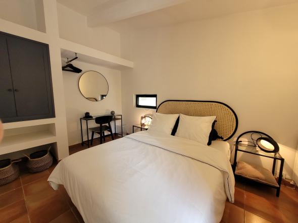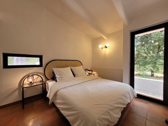 Appartement indépendant de plain de 45 m² pied situé à proximité de la maison des propriétaires. Propriété de 6 hectares.