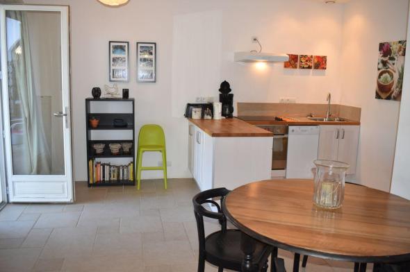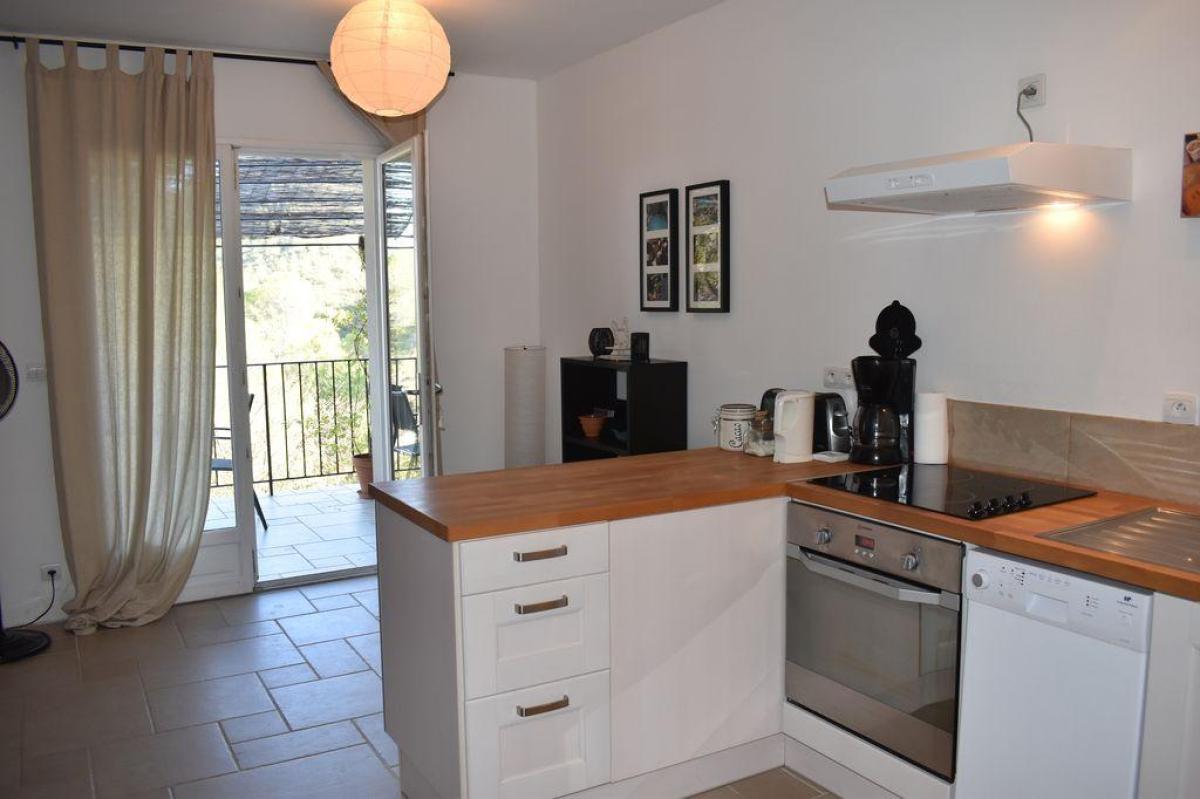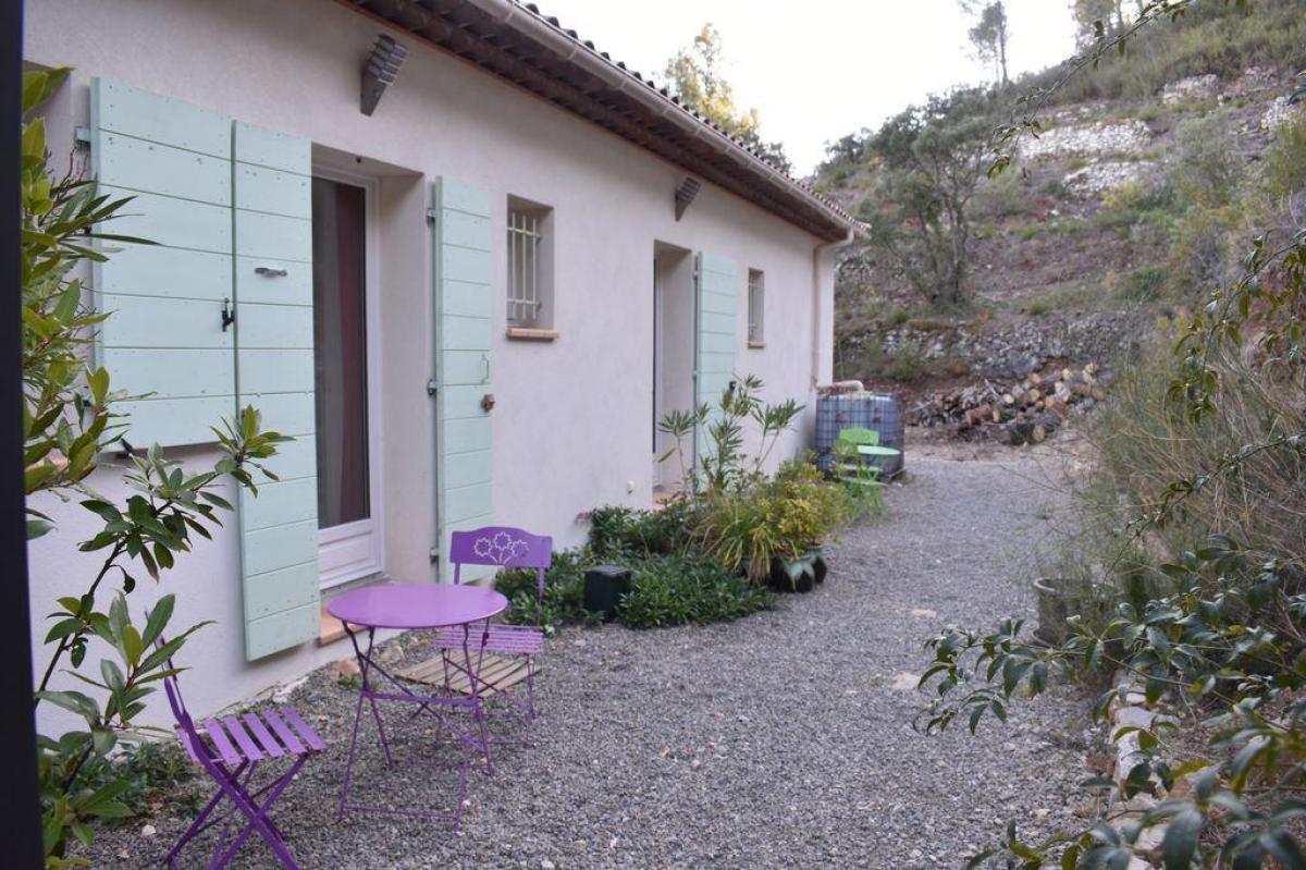 À 900 m du village - Appartement de plain-pied, mitoyen. Belle vue sur les collines, champs de vignes et oliviers. Terrain de 2 hectares. Quartier au calme. Possibilité de louer un autre hébergement pour 4 pers. sur la même propriété remise de 5%.