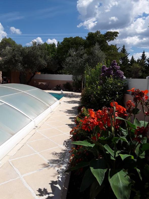 Studio avec un étage attenant à la maison des propriétaires. Jardin clôturé, fleuri et arboré, avec un potager. Quartier calme et reposant à environ 2.5 km du village. Respecter scrupuleusement le nombre de personnes (beaucoup trop d'abus)