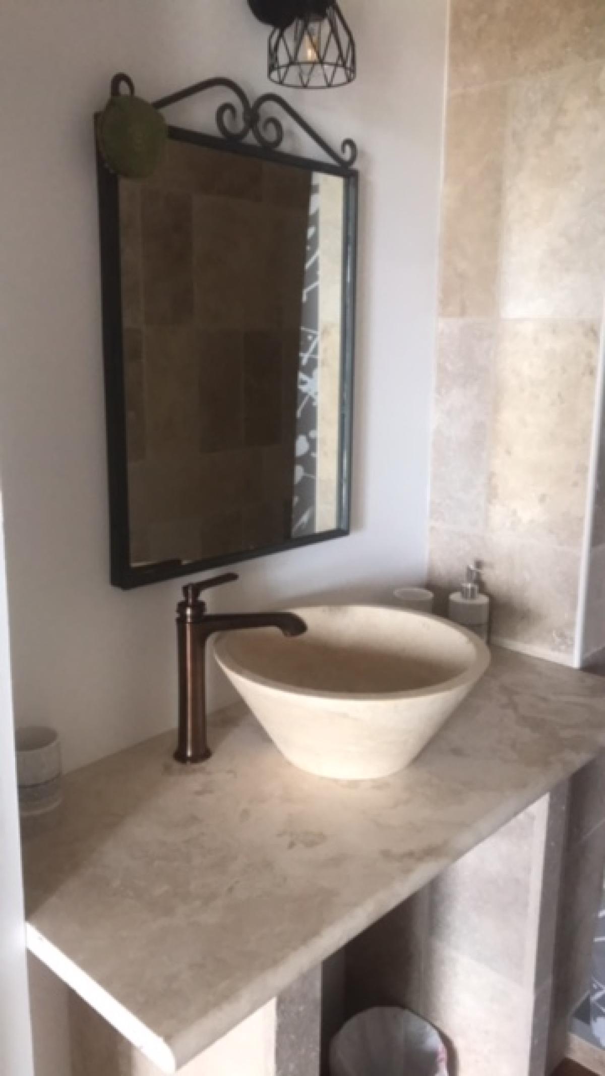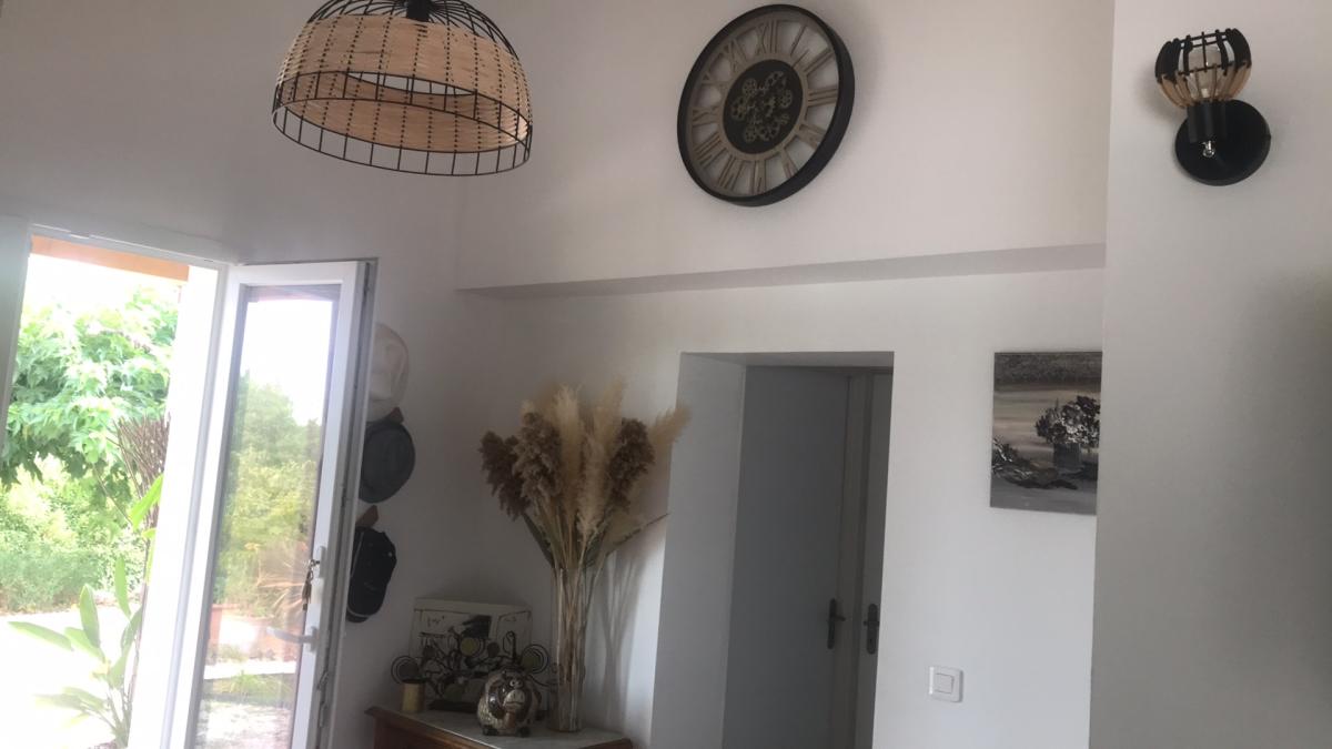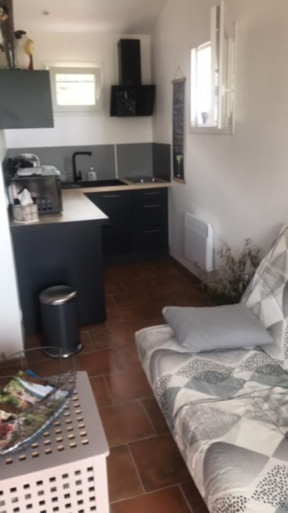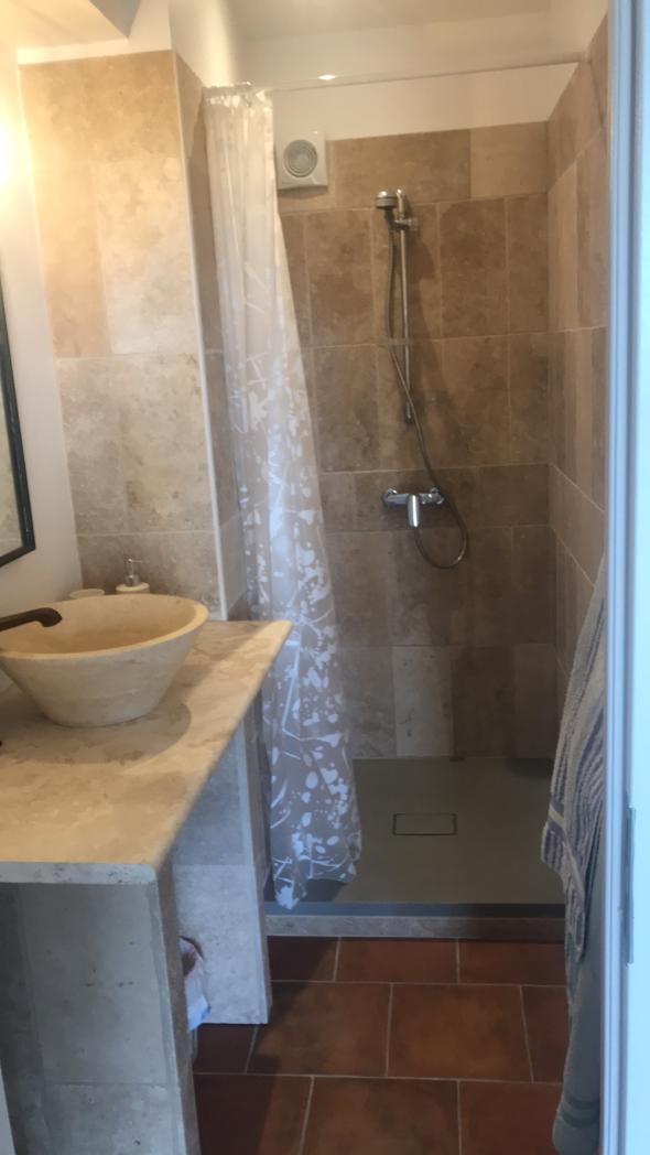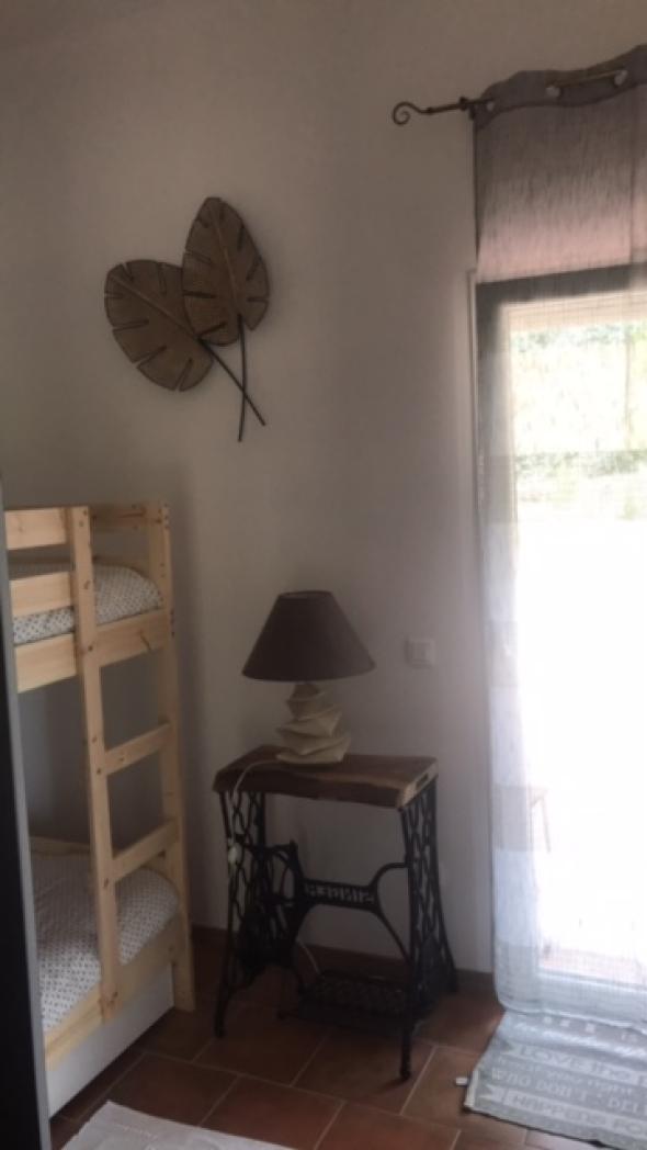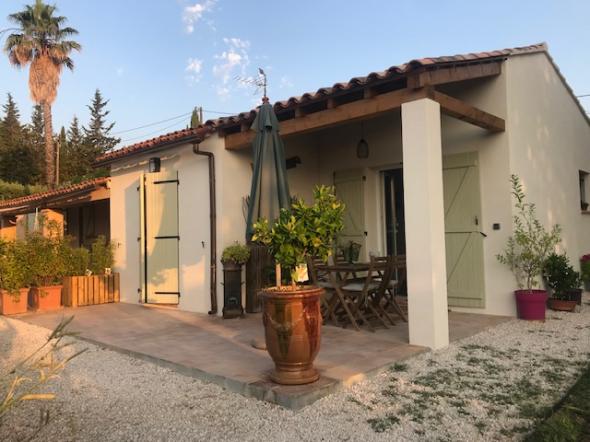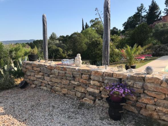 Appartement indépendant de plain pied situé dans la maison des propriétaires, avec un grand jardin fleuri et arboré de 2500 m² en restanque. Vue sur le massif des Maures.