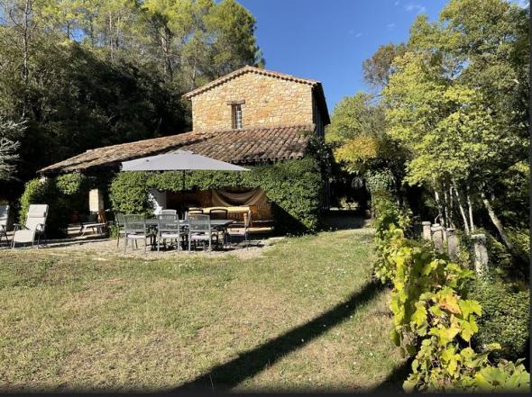 Spacieuse maison de campagne en Provence de 142 m² plain-pied avec piscine, terrasse et un vaste jardin de 8 300 m². Propriété le long de la rivière la Bresque. Prêt possible de 4 VTT. Animaux (chien et chat) admis sous conditions.