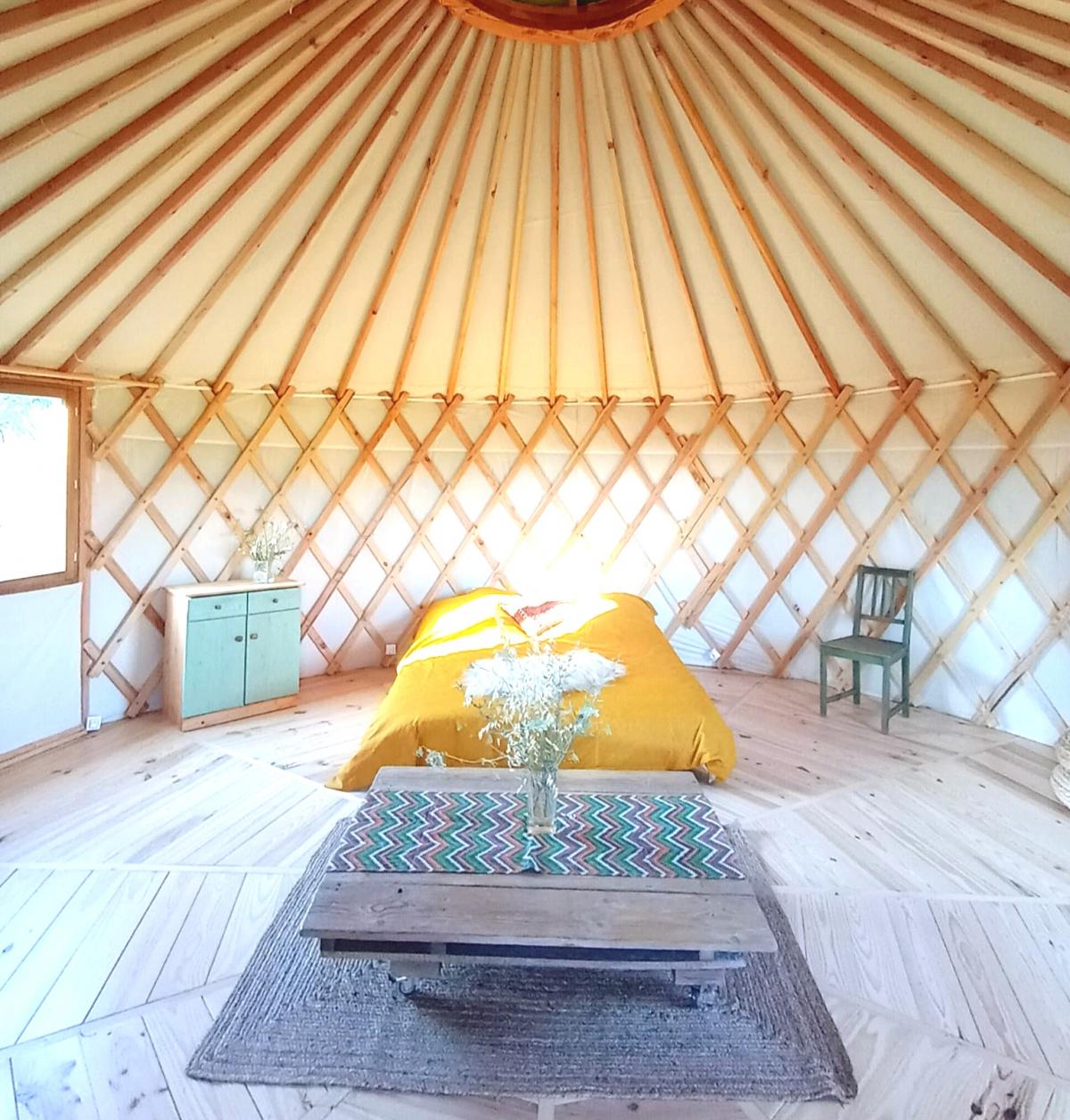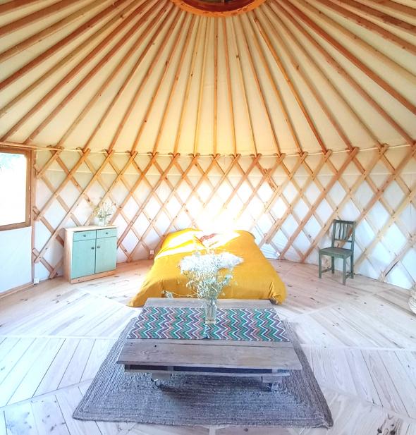 La cuisine (séparée avec coin repas) est en extérieur. On peut prendre le repas à l'intérieur de la yourte ou profiter du grand air grâce à notre salle à manger extérieure avec vue panoramique.