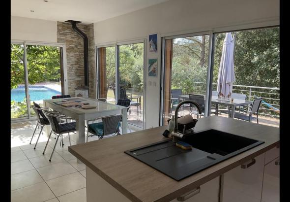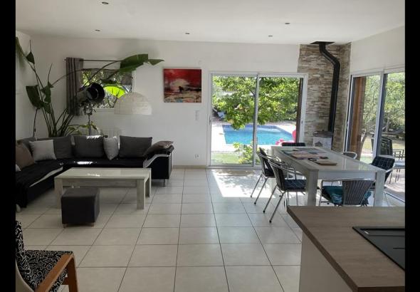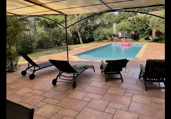 Spacieuse maison indépendante plain-pied de 120 m² avec deux terrasses, piscine et pool house. Située dans un grand jardin clôturé de 2000 m² sans vis à vis, proche du charmant village de Le Val. Idéal pour un séjour détente en Provence Verte.