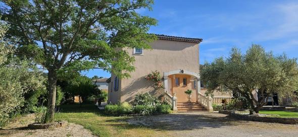Spacieuse maison indépendante plain-pied de 140 m² entourée d'oliviers, vignes et arbres fruités avec piscine, cuisine d'été, boulodrome, etc. Située dans une vaste propriété de 2500 m², c'est un havre de paix pour un séjour en famille en Provence Verte.