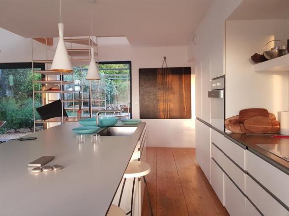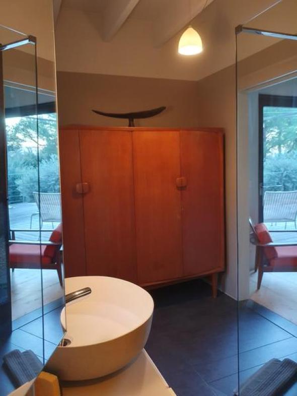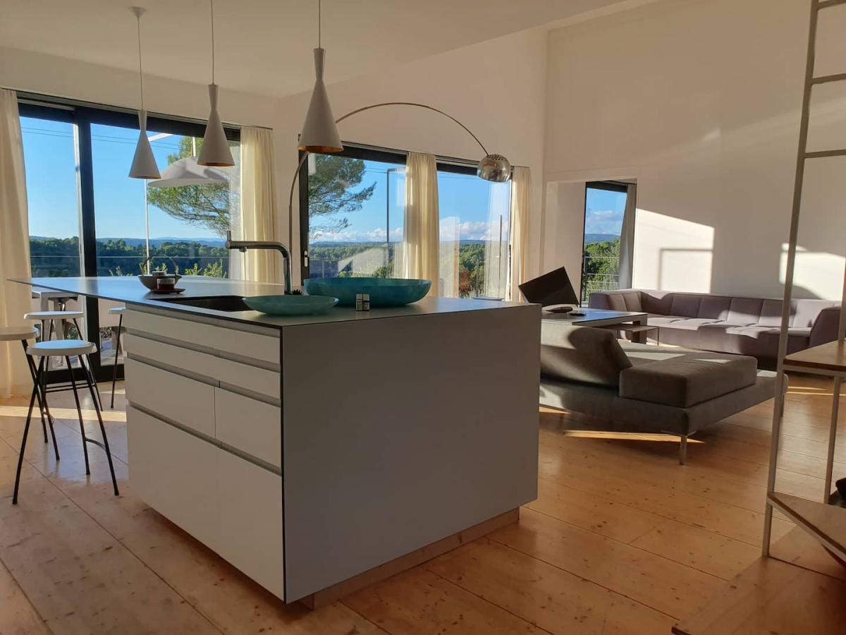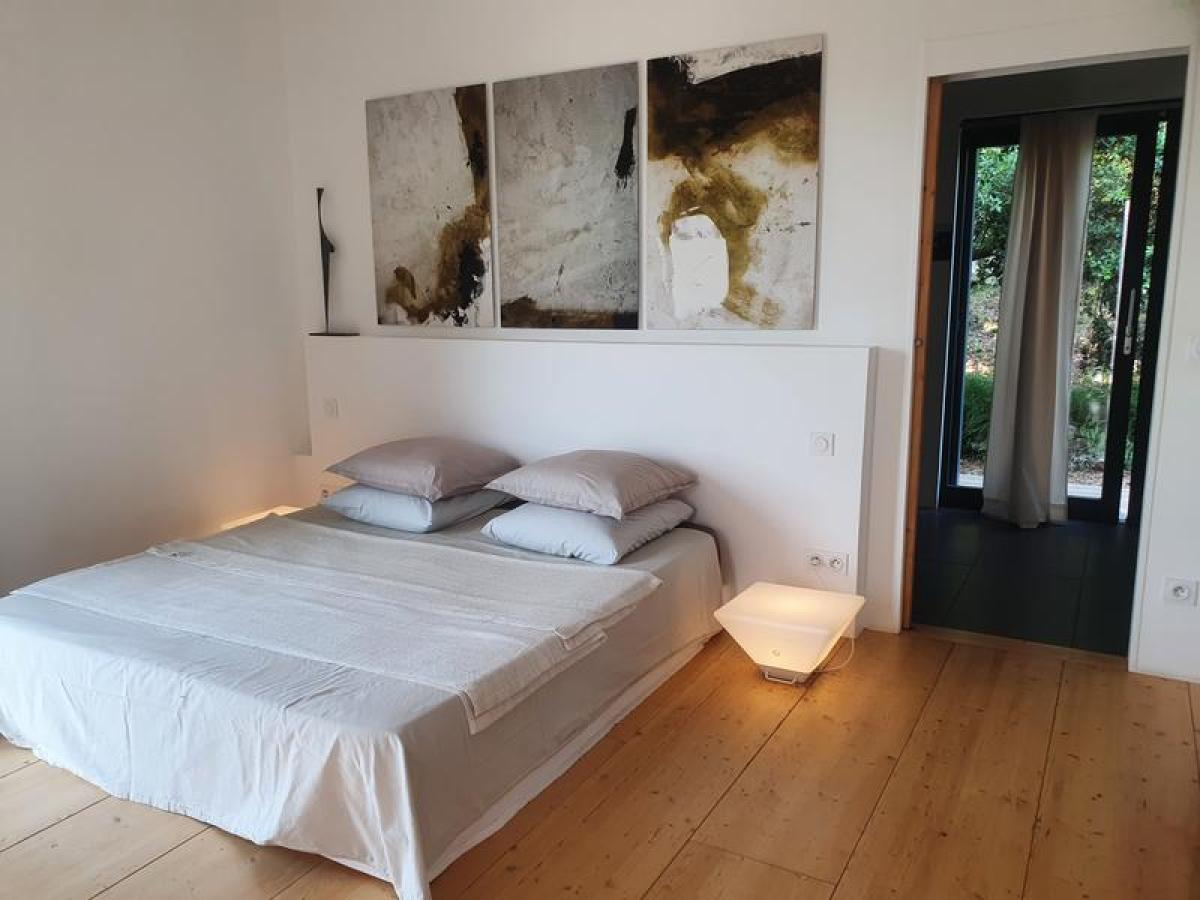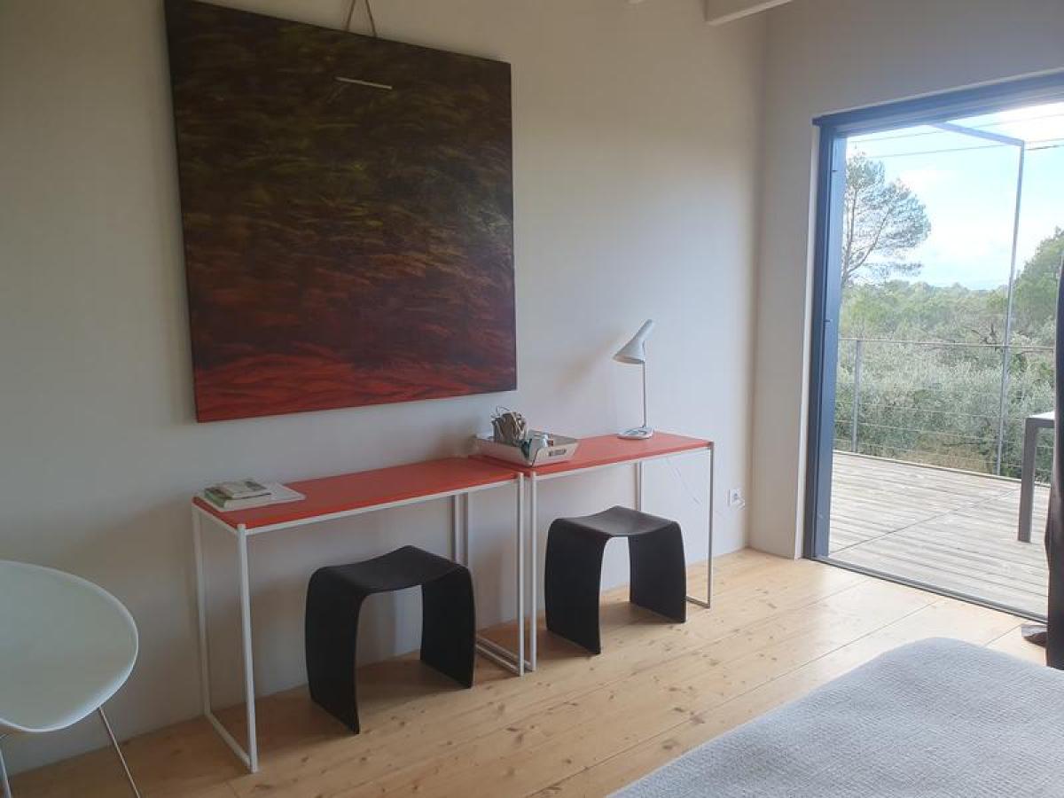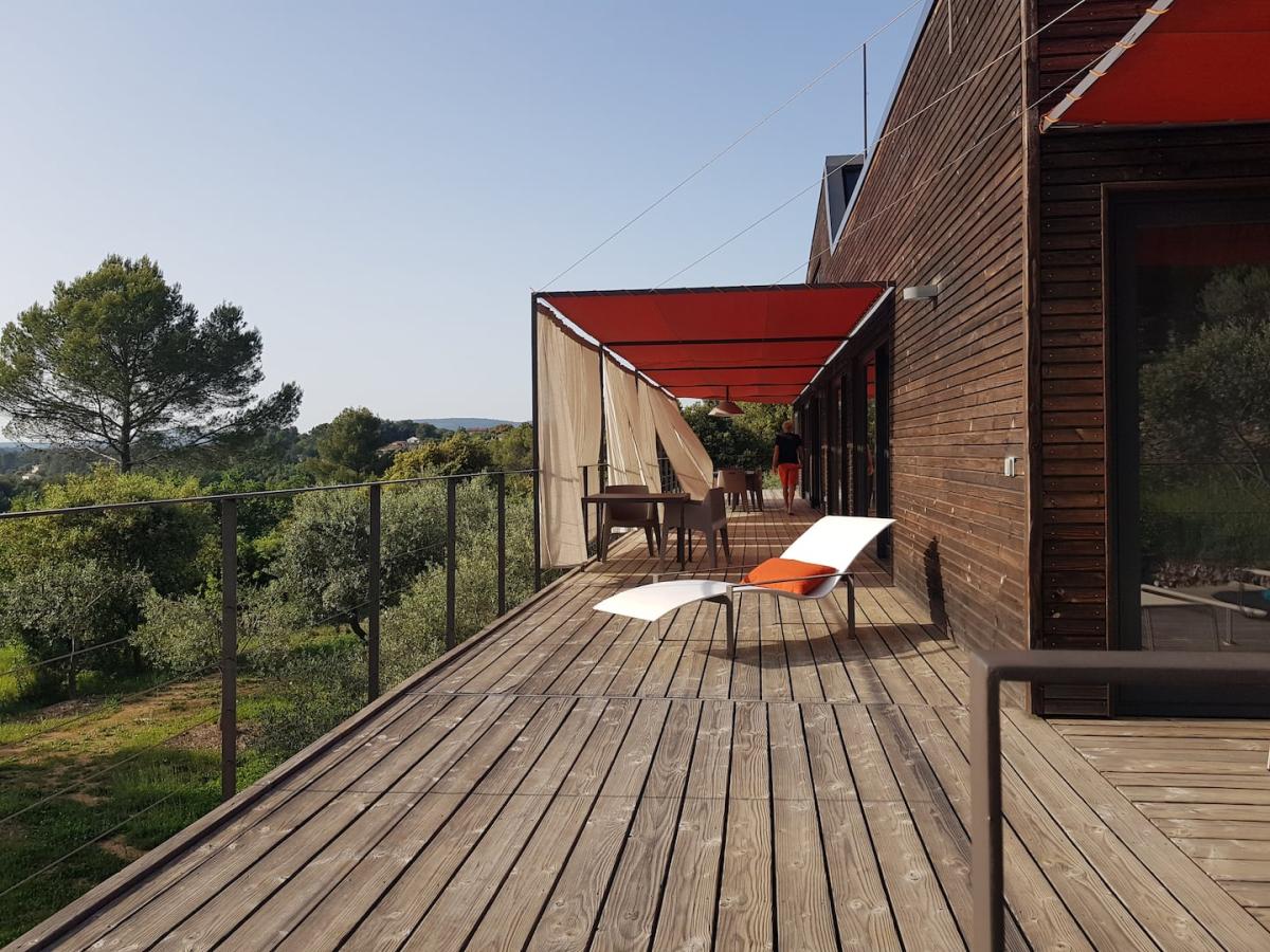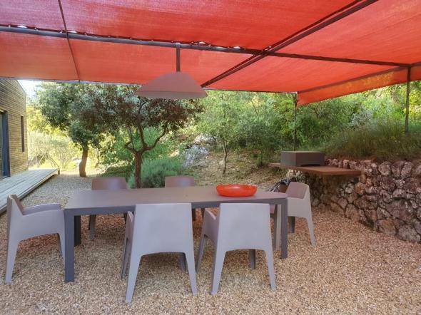 Spacieuse maison contemporaine écologique en bois de 160 m². Décor et confort soignés. Vue dominante sur restanques d'oliviers et collines environnantes. Paradis des cigales et des amateurs de tranquillité. À environ 800m du village de Pontevès.