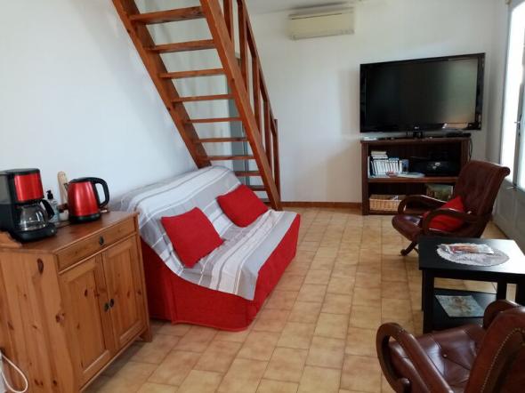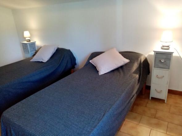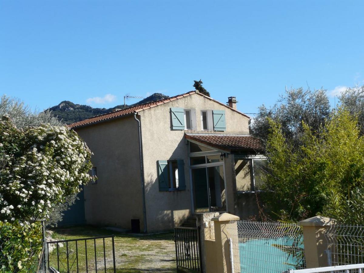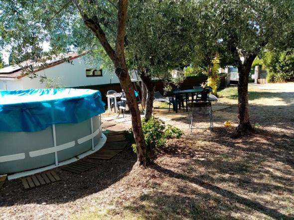 Petite villa située dans un jardin clos de 700m² planté d'oliviers à l'entrée du village avec très belle vue sur les collines environnantes.
