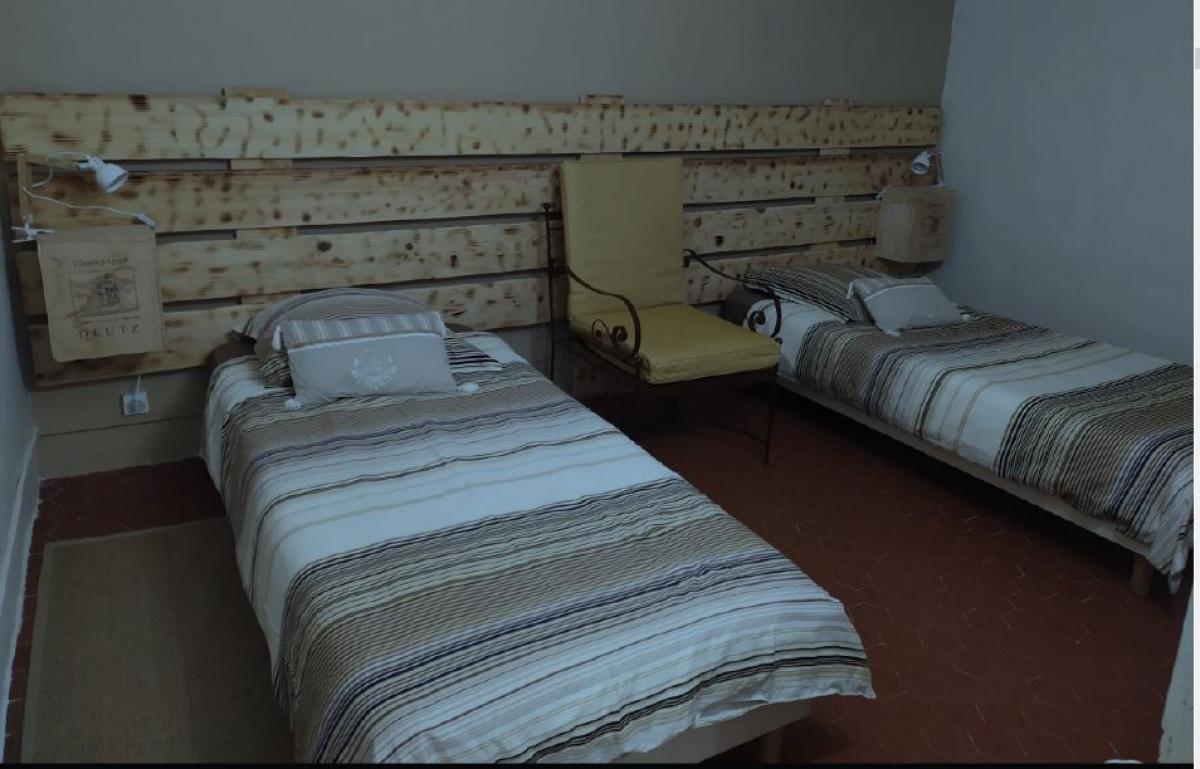 - La chambre OCRE : équipée d'un grand lit 160*200, offre un accès direct à une salle d'eau WC séparés. Un couchage supplémentaire est disponible si besoin.