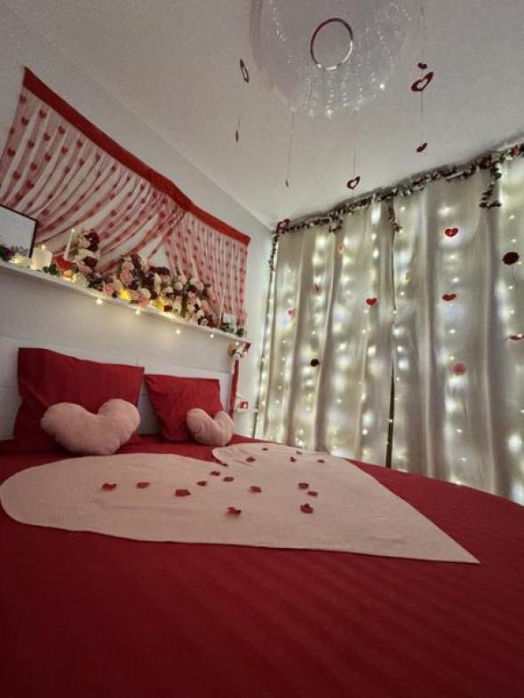 - Pièce à vivre unique avec cuisine et salon. La pièce est entièrement décorée à l'occasion des nuits à thème pour une expérience immersive