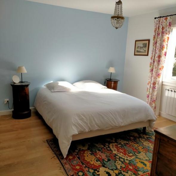 Maison indépendante spacieuse de 150 m² avec piscine et terrasse. Située dans un vaste jardin clôturé de 2500 m², à proximité de l'habitation des propriétaires.