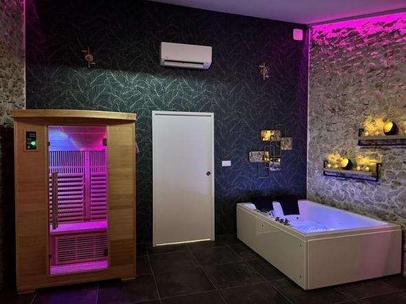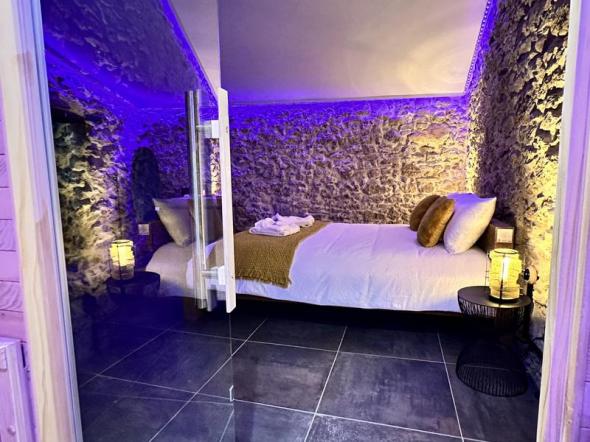 Découvrez la Clef des Sens, un loft de 60m² avec baignoire balnéo pour 2 et sauna privatifs à infrarouge.