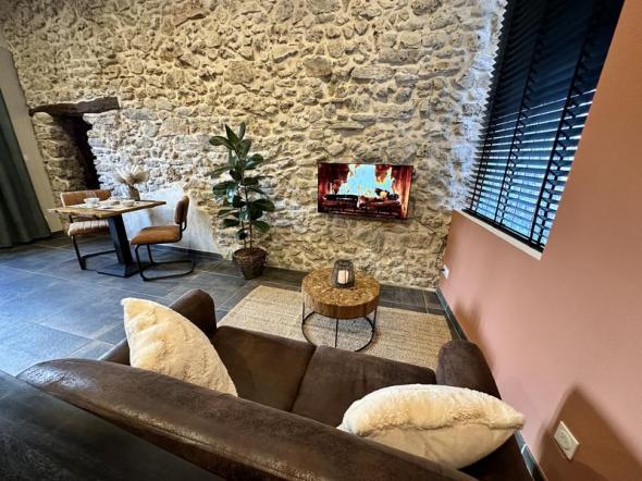 Avec sa décoration alliant le moderne dans de l’ancien, ce logement insolite conserve le charme des pierres anciennes allié à une décoration cocooning.