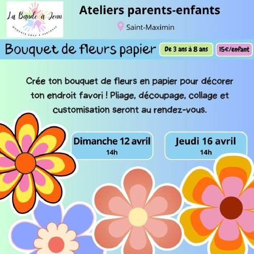 Initiation / découverte dans le cadre d'un événement : Venez créer votre bouquet de fleurs en papier pour décorer votre endroit préféré: pliage, découpage, collage et customisation seront au rendez-vous . Ateliers parents/enfants organisés par La Bande à Jenn. Enfants de 3 à 8 ans.