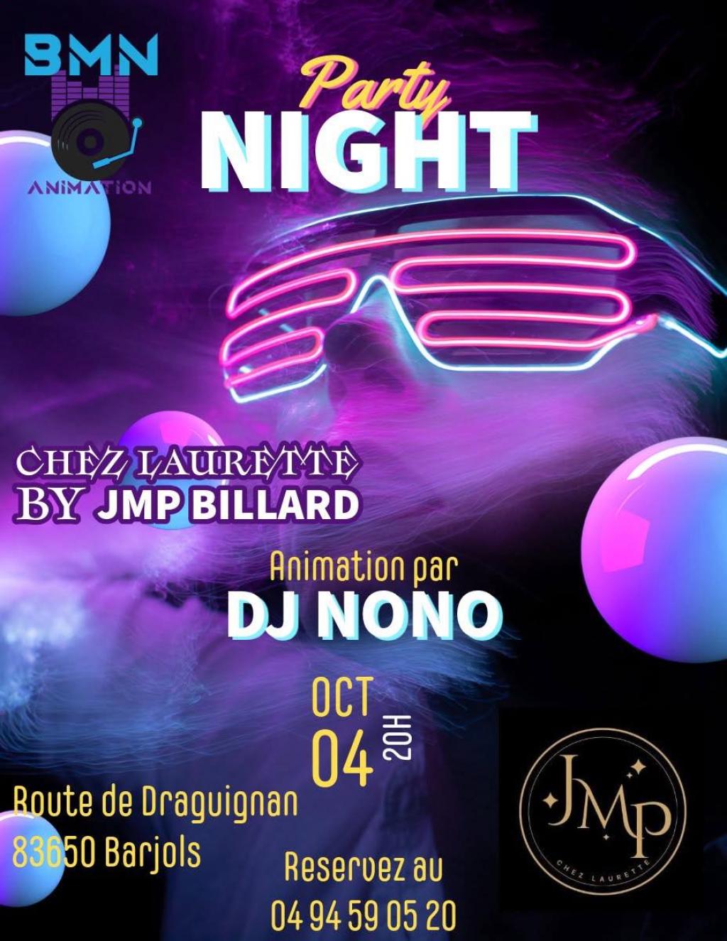 “ Au programme de la reprise des soirées du JMP Billard : mix explosif, ambiance festive et une soirée 100% danse jusqu’au bout de la nuit grâce à Dj Nono. Réservations conseillées, restauration sur place. ”
