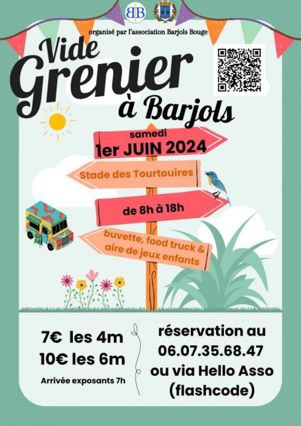 “ Envie de faire du tri dans vos armoires ou de dénicher des trésors ? L'Association Barjols Bouge vous invite à son grand vide grenier. Sur place : Aire de jeux pour enfants, buvette et food truck. ”