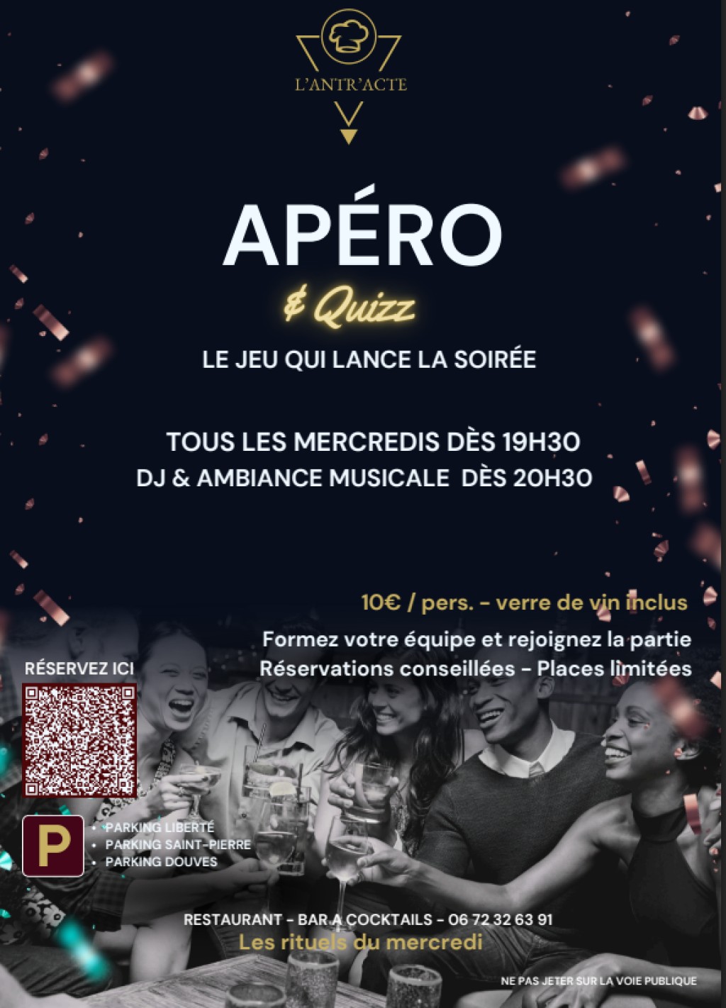 Pensée comme un moment convivial et accessible à tous, la soirée mêle jeu, rires et échanges dans une ambiance chaleureuse inspirée du cinéma. À partir de 20h30, l’atmosphère se prolonge avec une ambiance musicale pour continuer la soirée autour d’un verre.