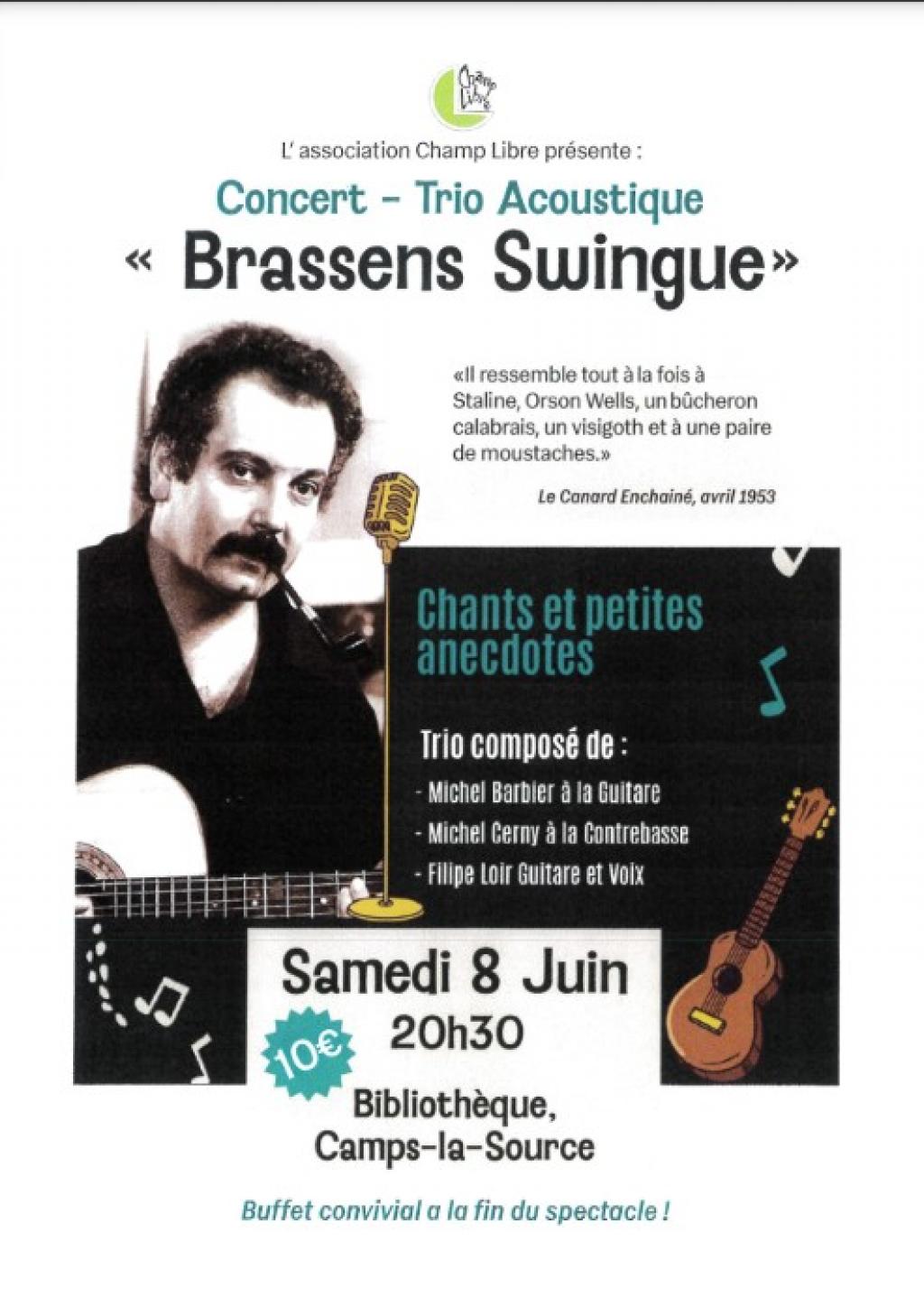 “ L'association Champ libre présente le concert Brassens swingue. Chants et petites anedoctes. ”