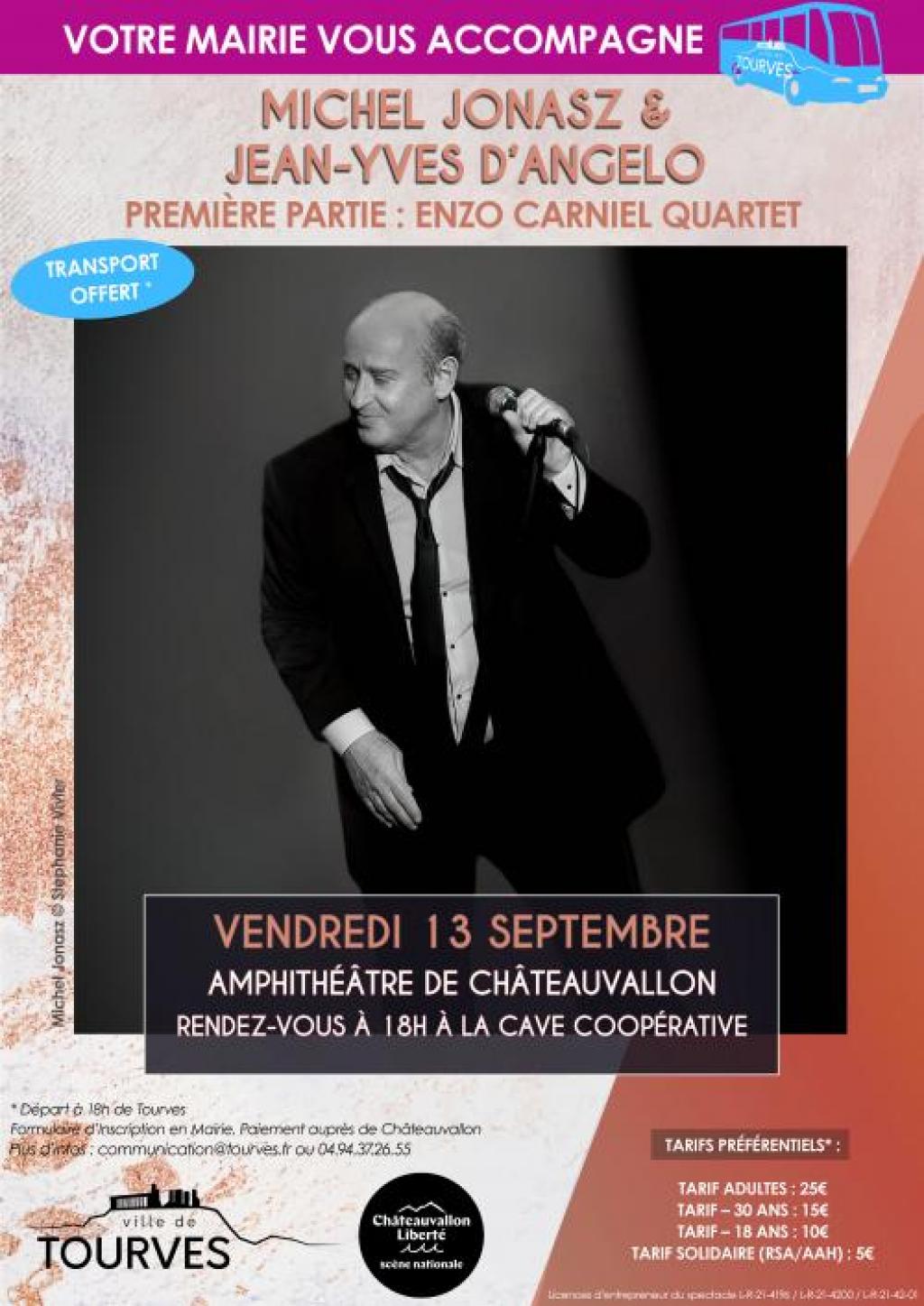 “ Votre mairie vous accompagne au concert Michel Jonasz et Jean-Yves D'Angelo au Théâtre de Châteauvallon ”