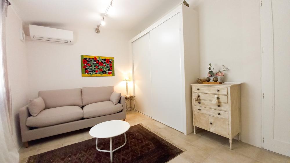 Villa de charme située en pleine campagne, sur un terrain de 4100 m² au calme. Maison magnifiquement rénovée et entièrement climatisée. Petit studio indépendant pour 2 personnes avec canapé lit, climatisé (salle d'eau, wc, terrasse et cuisine d'été).