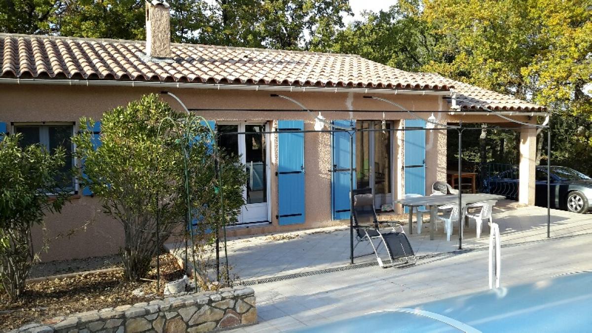 Maison de plain pied avec studio accessible par un patio, de 100m² située à la campagne, avec grand jardin de 1500m². Piscine avec abri escamotable très sécurisant pour les petits enfants avec nage à contre courant.