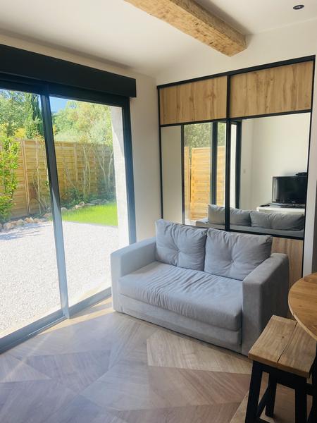 Maisonnette indépendante de plain-pied de 38 m² avec jardin privatif de 200 m² et une vue à couper le souffle sur le massif de la Sainte-Baume. Idéal pour un séjour détente en Provence Verte.