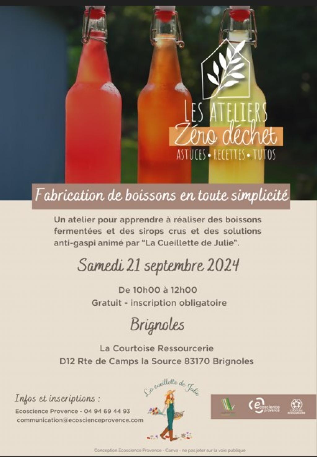 “ Un atelier pour apprendre à réaliser des boissons fermentées et des sirops crus et des solutions anti-gaspi animé par la cueillette de Julie. ”