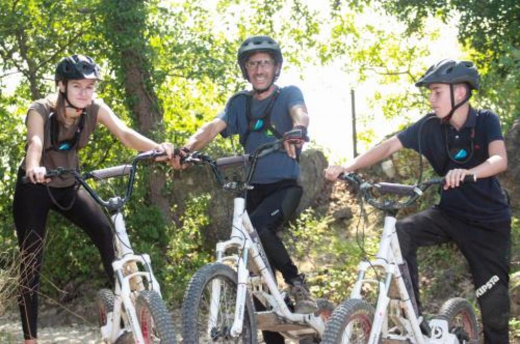 “ Une activité originale, ludique et respectueuse de l'environnement pour des sensations uniques. Juchés sur des trottinettes de descente capables de s'aventurer dans la nature en toute sécurité, vous traverserez forêt, collines et longerez la rivière. ”
