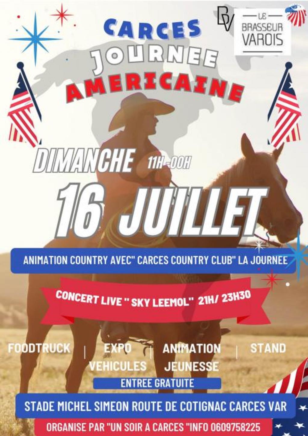 “ L'Amérique s'invite à Carcès autour de diverses animations à thème. Barbecue au profit de l'Amicale des sapeurs pompiers de Carcès ”