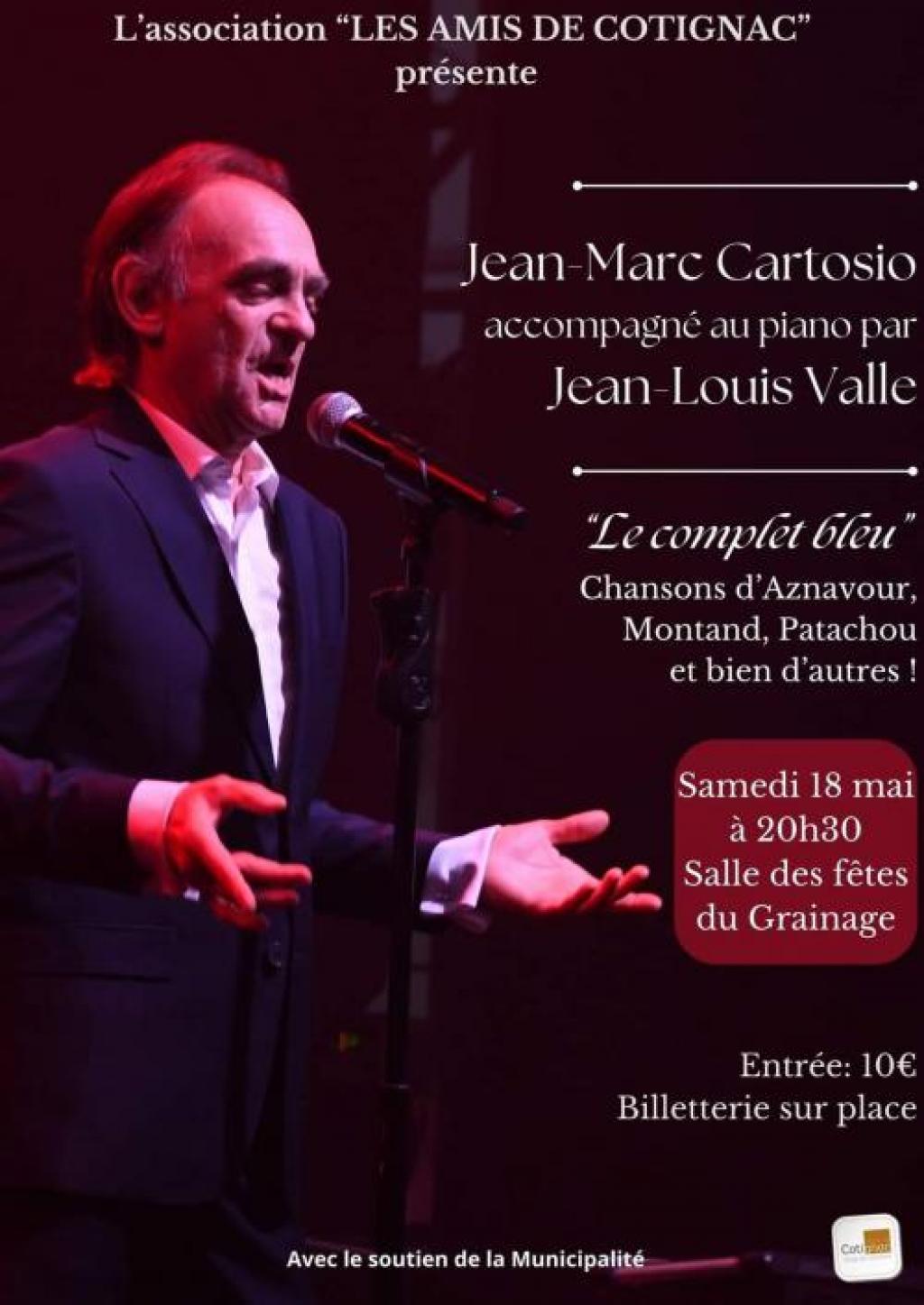 “ Cet artiste accompagné au piano par Jean-Louis Valle, interprétera "Le complet bleu", en hommage à Aznavour, Montand, Patachou et bien d'autres grands chanteurs ! ”