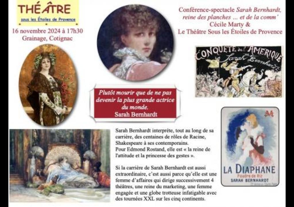 “ Au cours de cette soirée, Cécile Marty présentera la divine sous toutes ses formes : rôles, gestuelle, voix,... Elle sera accompagnée par la compagnie du Théâtre sous les Étoiles de Provence pour des citations drôles, sarcastiques, tendres. ”