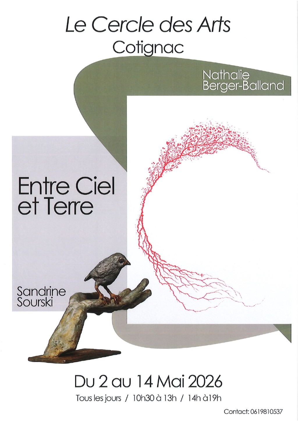 Du 02/05 au 14/05/2026 tous les jours de 10h30 à 13h et de 14h à 19h.