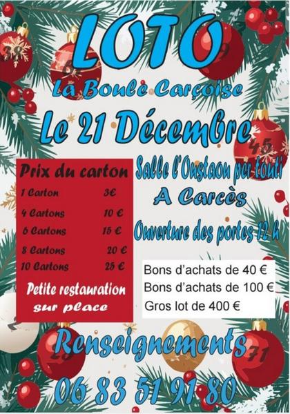 Loto de l'Association La Boule Carçoise