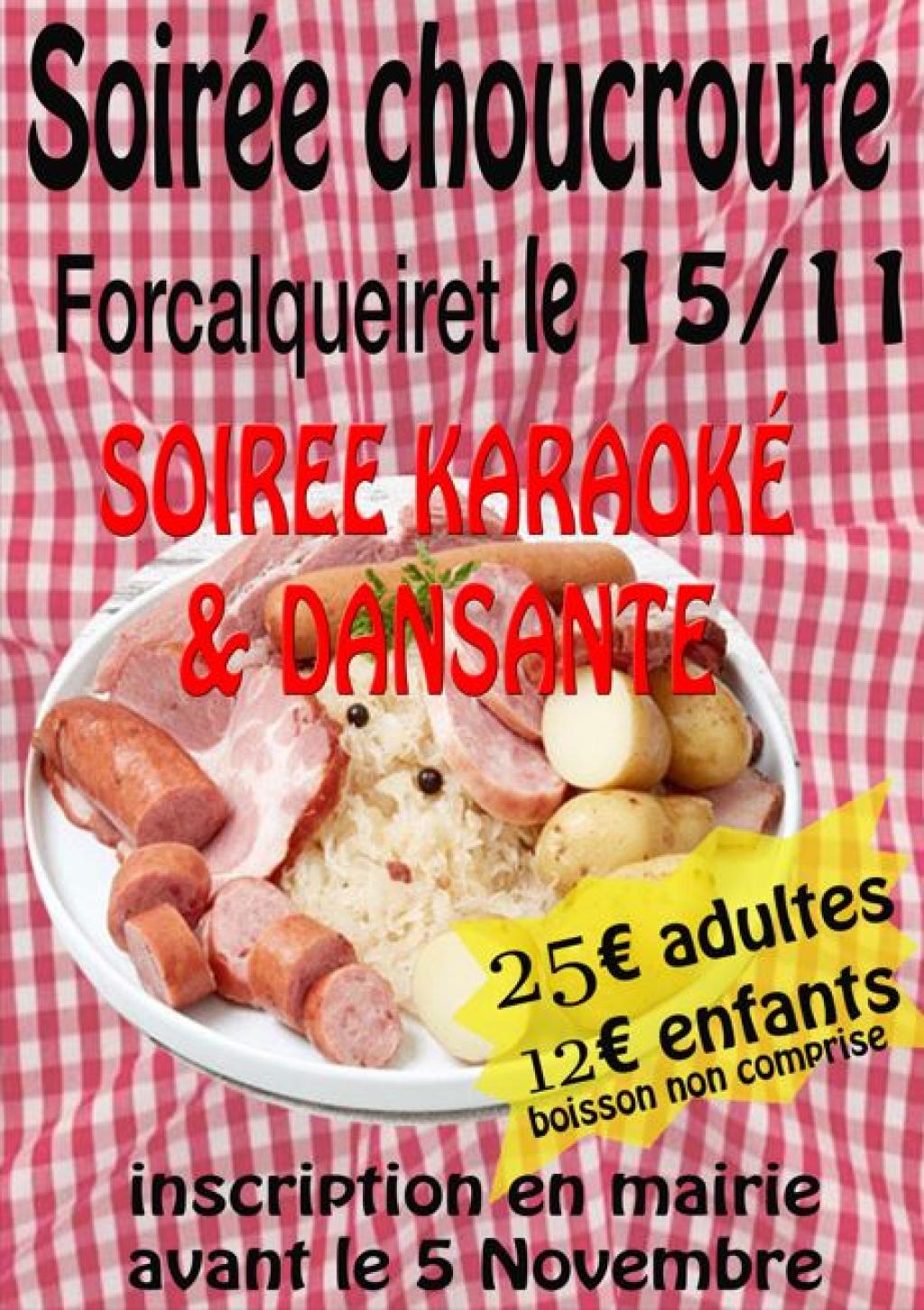 “ Un repas dansant et karaoké vous est proposé. Venez déguster la choucroute. ”